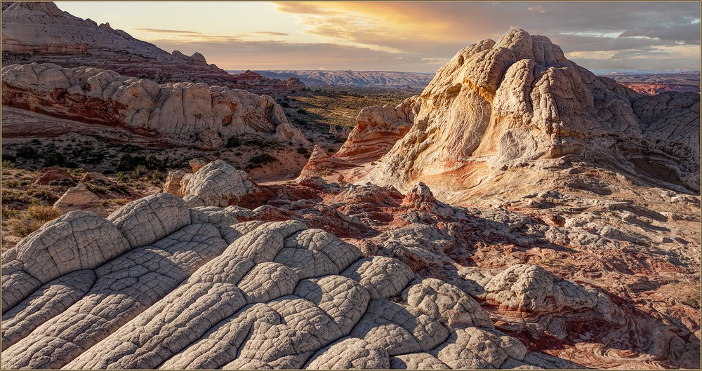 A Drone view of the Icecream Sundae Rock in White Pocket located in northern Arizona at the Utah border